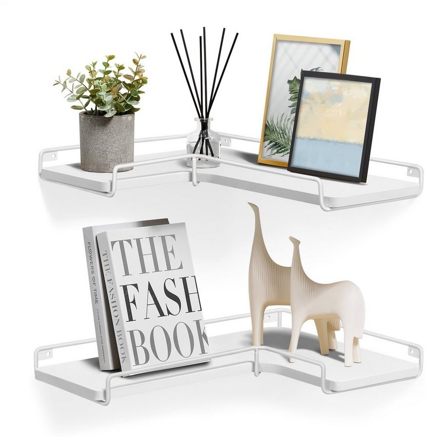 **Produktdetails:** - Farbe: Wolkenweiß - Material: Holzspanplatte, Stahl - Größe: - Lange Seite: 40 cm - Kurze Seite: 29 cm - Breite: 14 cm - Dicke: 1,2 cm - Gewicht insgesamt: 2 kg - Max. statische Belastbarkeit pro Regal: 5 kg **Lieferumfang:** - 2 x Wandregal - 1 x Zubehörpaket - 1 x Anleitung