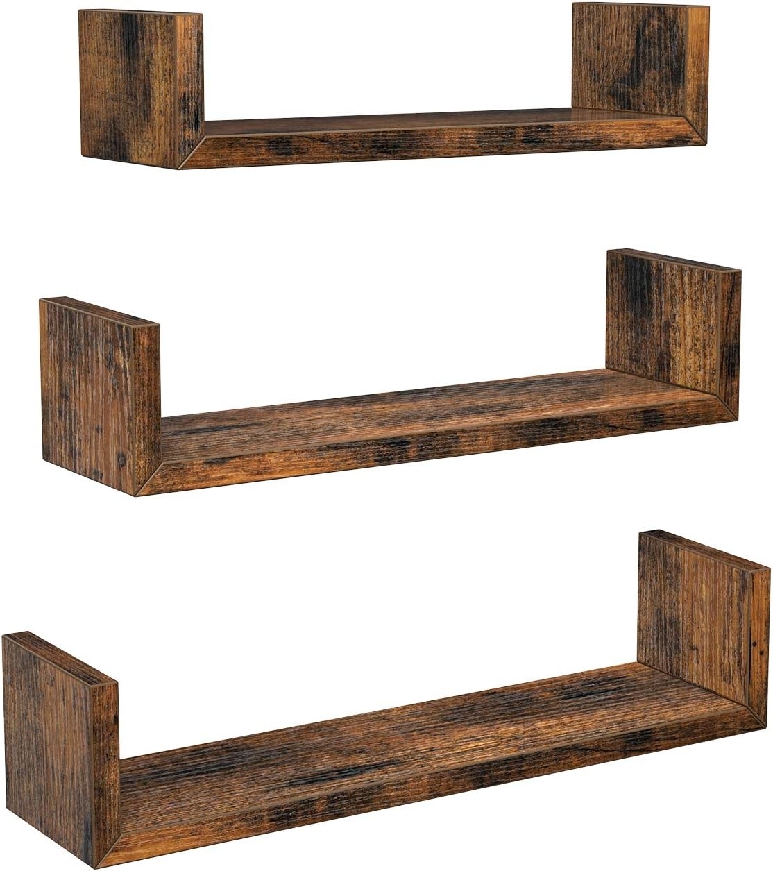 in WandregaleVasagle Wandregale in U-Form3er Set, Schweberegale im Vintage-Stil, Wandmontage, für Dekos, Wohnzimmer, Schlafzimmer und Büro, vintagebraun LWS034X01