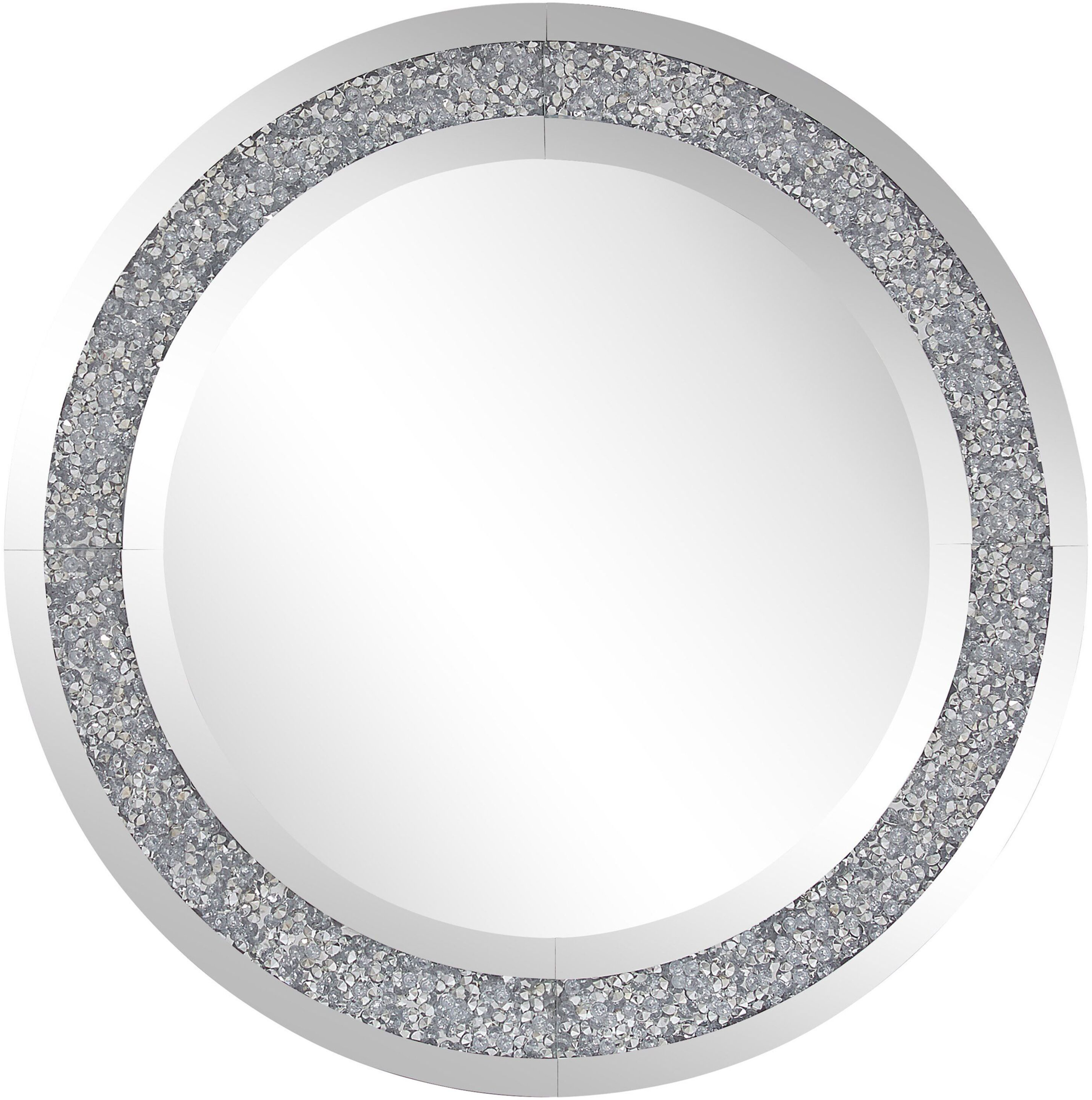 Exklusiver, runder Wandspiegel mit einem Durchmesser von 70 cm. Der silberne Spiegel besticht durch seine glänzende Umrandung und den prachtvollen Rahmen aus Acrylglas-Steinen und Glas mit Facettenschliff. Ideal für Flur, Schlafzimmer oder Wohnzimmer, verleiht er jedem Raum Glanz und Raffinesse. Die Rückseite ist mit einer Aufhängung ausgestattet, sodass der Spiegel sofort einsatzbereit ist. **Highlights** - Hochpräzise Verarbeitung - Rahmen aus Acrylglas-Steinen und Glas mit Facettenschliff - Effektvoll gegenüber einem Fenster oder über dem Bett - Stilvoll und modern im Gäste-WC - Elegante Akzente für jeden Raum **Produkteigenschaften** - Typ: Wandspiegel - Stil: Glamourös - Material: MDF-Platte, Acrylglas - Form: Rund - Finish: Glänzend - Maße (HxBxT): 70 x 70 x 2 cm - Gewicht: 7 kg - Inkl. Aufhängung auf der Rückseite - Vergrößert den Raum optisch **Lieferumfang** - 1 x Spiegel 1 x Aufhängung