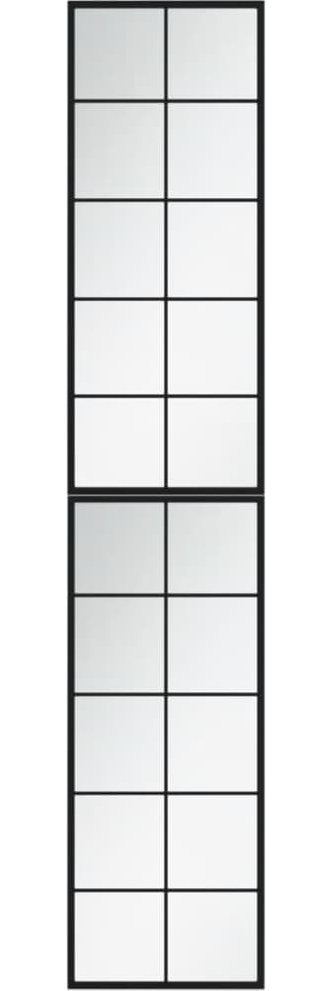 Der vidaXL Wandspiegel in Schwarz aus Metall (100 x 40 cm) ist eine stilvolle Ergänzung für Ihr Zuhause. Er eignet sich ideal als Ankleide-, Schmink- oder Dekorationsspiegel und kann im Schlafzimmer, Flur oder Wohnzimmer eingesetzt werden. Dank der einfachen Wandmontage und des zeitlosen Designs ist er vielseitig einsetzbar. Im Lieferumfang sind 2 Spiegel enthalten, die nebeneinander aufgehängt werden können. **Highlights** - Vielseitig einsetzbar als Ankleide-, Schmink- oder Dekorationsspiegel - Zeitloses Design mit eleganten Linien und glatten Kanten - Einfache Montage dank Befestigungshaken - Lieferumfang: 2 Spiegel (100 x 40 cm) für Gesamtgröße von 200 x 40 cm - Gestellfarbe: Schwarz, Material: Metall, Glas **Produkteigenschaften** - Größe: 100 x 40 cm (L x B) - Glasstärke: 3 mm - Material: Metall, Glas **Lieferumfang** - 2 x Wandspiegel - Exklusive weitere Produkte