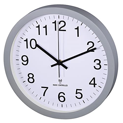Hama Funkwanduhr ohne Tickgeräusche (analoge Wanduhr mit großem Ziffernblatt, Wohnzimmeruhr, Schlafzimmeruhr inkl. Batterie) Grau