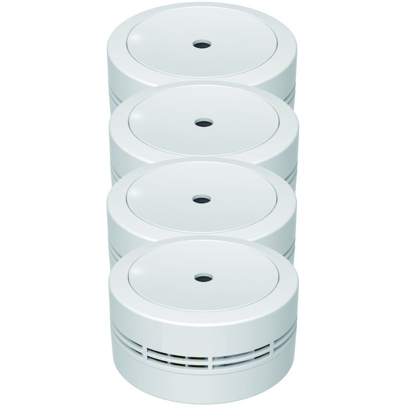 in WarnmelderJeising 4er Set Mini Design Rauchmelder GS535 weiß s Lithium Batterie - VDS geprüft EN14604 komform Funktionsprüfung mit Stummschaltung