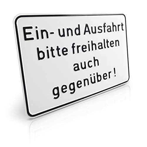 in WarnschilderBetriebsausstattung24® Hinweisschild geprägt aus Aluminium mit Einbrennlackierung | Ein- und Ausfahrt bitte freihalten auch gegenüber! 25,0 x 15,0 cm