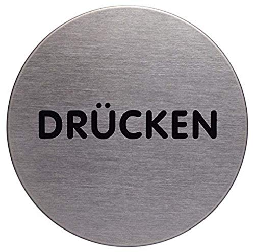 - Das Durable Türschild Picto rund (Drücken, 65 mm) metallic silber, 490061 ist ein hochwertiges Türschild aus Edelstahl