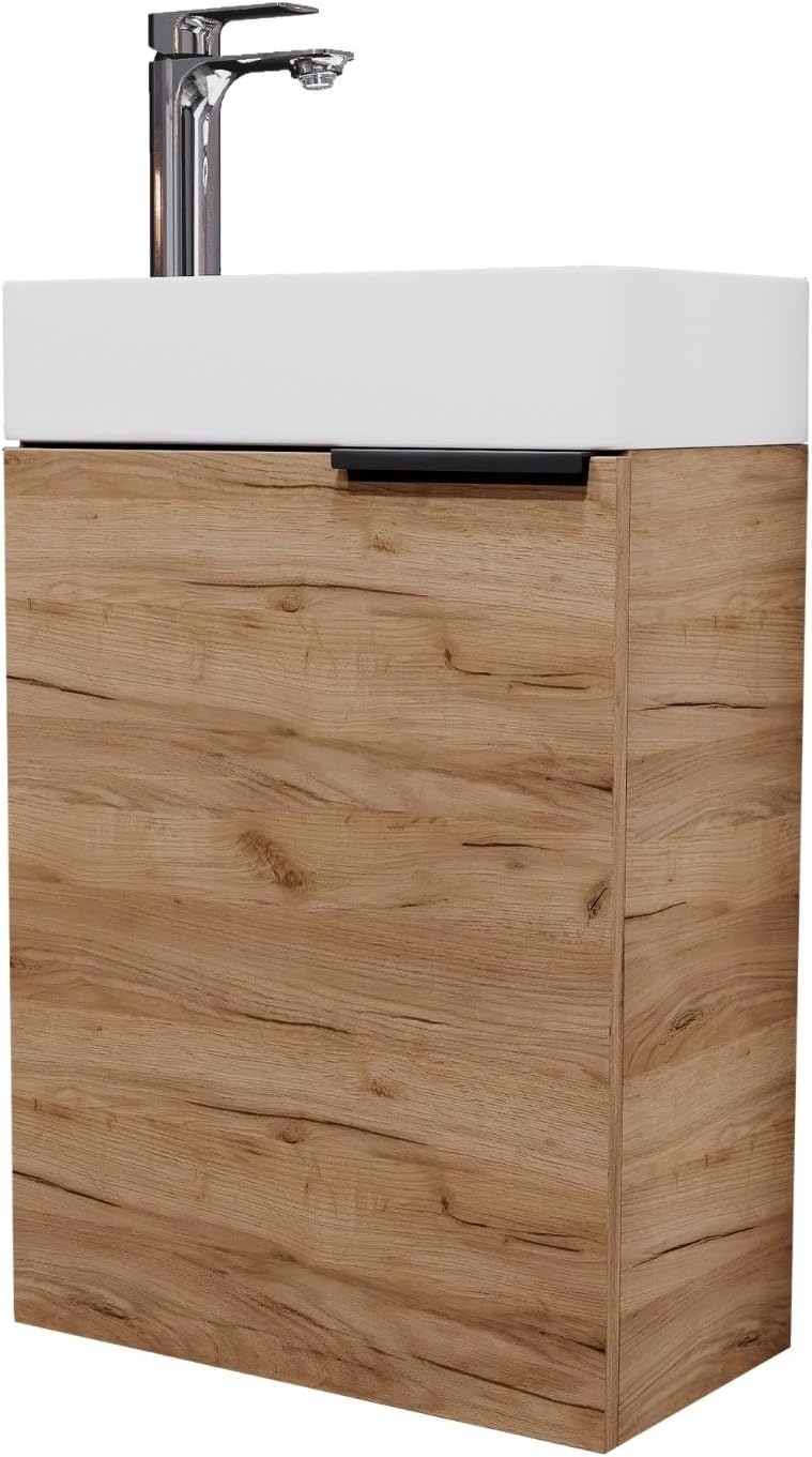 | Name | Planetmöbel Waschtisch mit Unterschrank 40 cm Waschbecken Bad Gäste WC Gold Eiche |