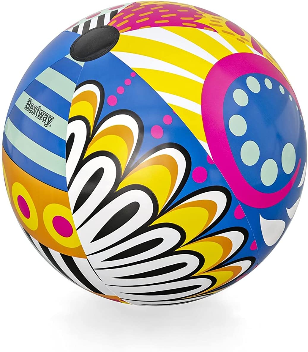 Wasserball für noch mehr Fun im Pool Mit diesem Wasserball können Sie Ihren Pool in eine Spaß-Oase verwandeln. Zur Lagerung und zum Transport einfach die Luft ablassen und zusammenfalten. So passt er auch wunderbar in jeden Koffer und kann mit in den Sommerurlaub kommen. Die Bälle sind in verschiedenen Größen und Farben erhältlich: Rosa & Gold: aufgeblasen haben sie einen Durchmesser von ca. 41 cm, Altersempfehlung: ab 2 Jahren Blau, Lila & Gelb: aufgeblasen haben sie einen Durchmesser von ca. 34 cm, Altersempfehlung: ab 2 Jahren Sicherheitshinweise: Achtung: Nicht für Kinder unter 2 Jahren geeignet. Achtung: Nur im flachen Wasser unter Aufsicht von Erwachsenen verwenden. -------------------------- Bunt: Größe aufgeblasen: Ø 91 cm, Altersempfehlung: ab 3 Jahren Sicherheitshinweise: Achtung: Nicht für Kinder unter 3 Jahren geeignet. Achtung: Nur im flachen Wasser unter Aufsicht von Erwachsenen verwenden. Zur Pflege aller aufblasbaren Vinylartikel empfehlen wir unser Vinylspray.