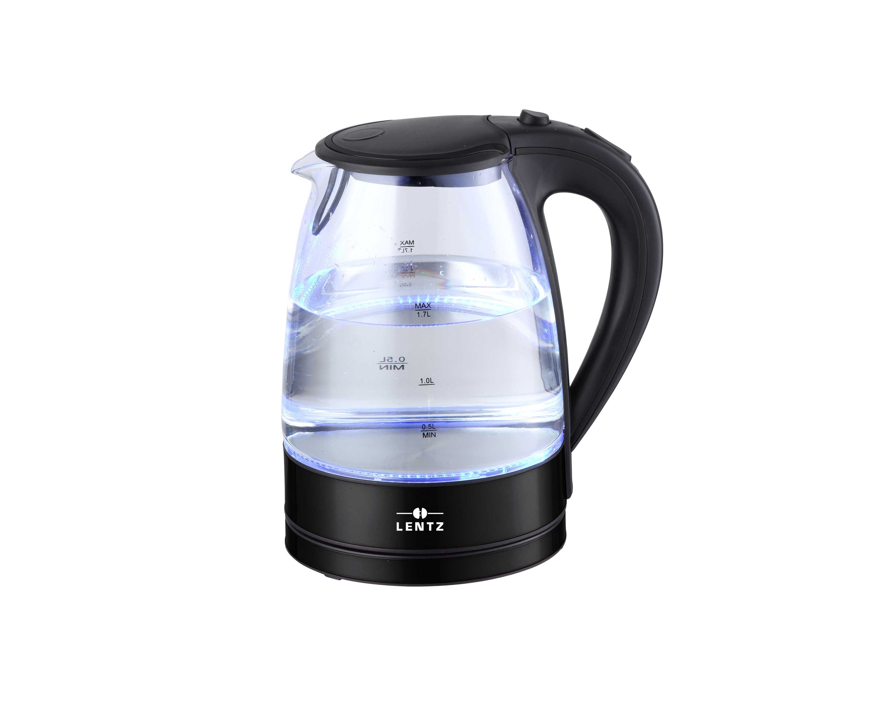 Lentz Glas-Wasserkocher2200W, 1,7 Liter, kabellos, LED-Licht, schwarz