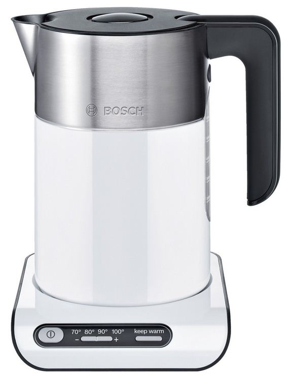 - Der Bosch TWK8611P kabellose Wasserkocher bietet eine Temperaturwahl mit vier Einstellungen: 70°C, 80°C, 90°C und 100°C, um das perfekte Teearoma zu gewährleisten.