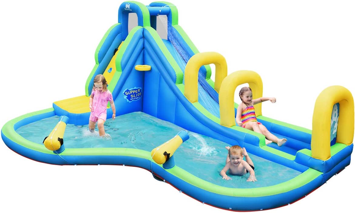 | Name | COSTWAY Huepfburg Wasserrutsche Spielpool Aufblasbare, Wasserspielcenter mit Rutsche, Wasserpark aufblasbar, Planschbecken 478x366x242cm |