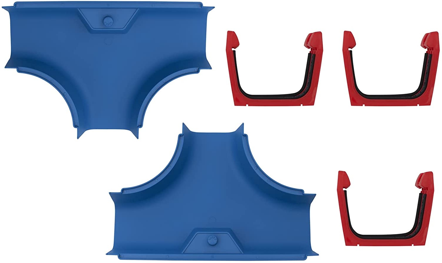 - Das Set besteht aus zwei T-Stücken und drei Verbindungsklammern mit Gummidichtungen.