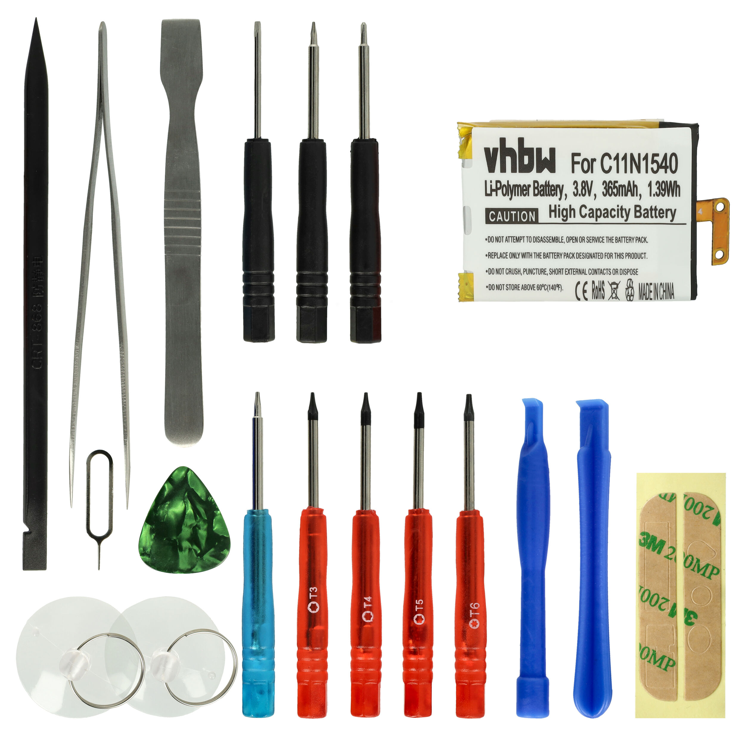 VHBW Akku Ersatz für Asus 0B200-01630100C11N1540 für Smartwatch Uhr Fitnessarmband (365mAh, 3,8V, Li-Polymer) + Werkzeug-Set