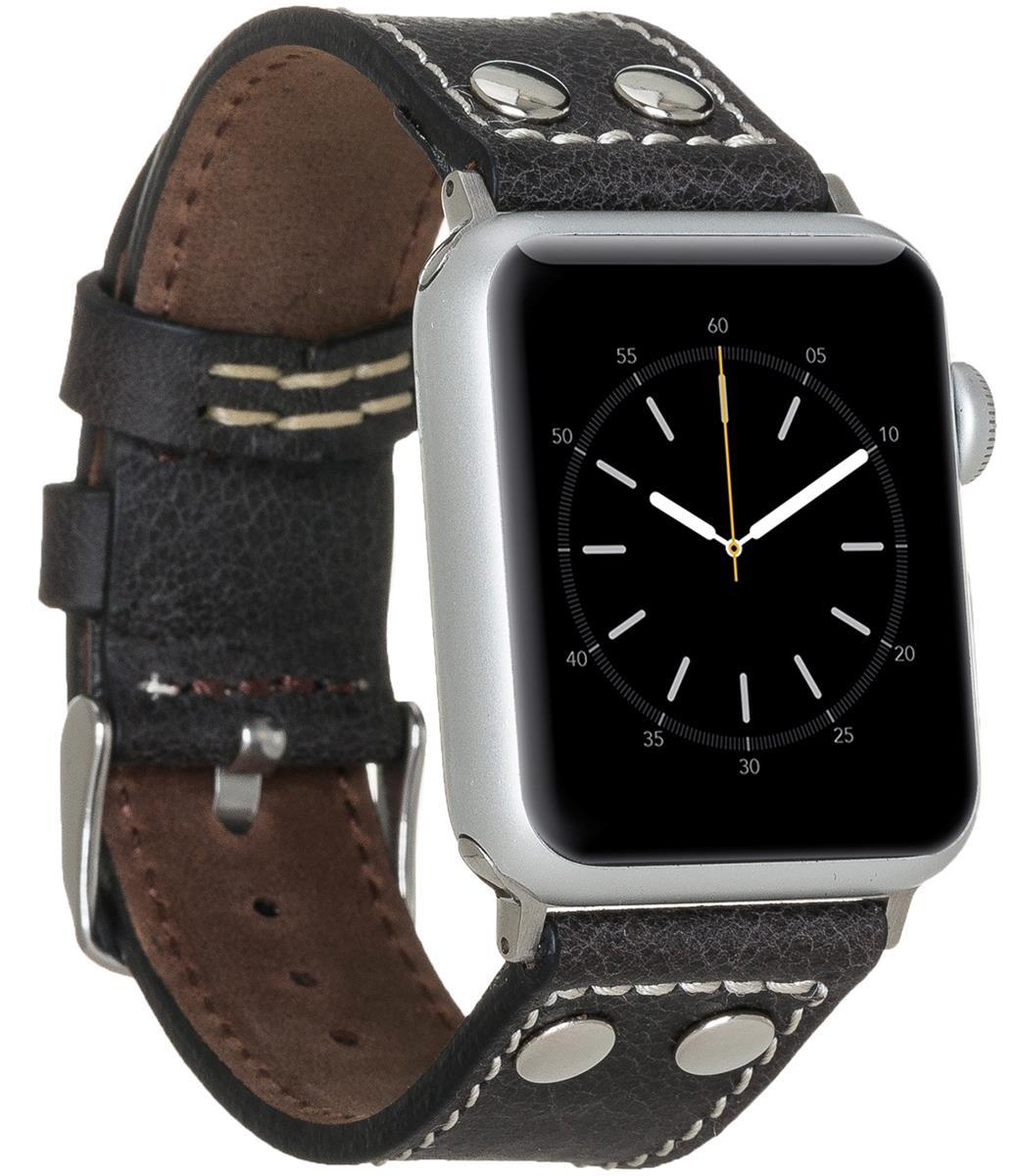 Burkley Apple Watch Leder Armband Vintage Schwarz Ersatz Uhren-Armband in 38/40mm (BA5)