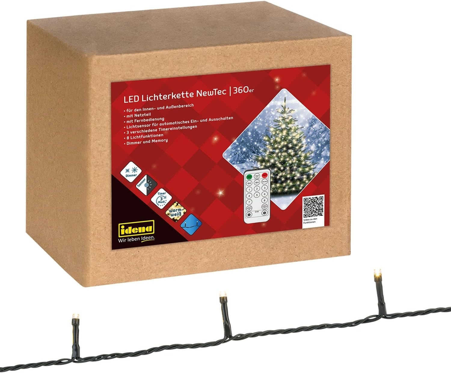 - Die Idena 31339 LED Lichterkette verfügt über 360 warmweiße LEDs, die eine gemütliche Atmosphäre schaffen.