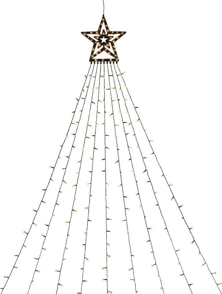 | Name | KONSTSMIDE LED-Lichtervorhang Triangel, 304-flammig, LED Lichtervorhang mit Stern, 304 bernsteinfarbene Dioden, H. 2,7 m |