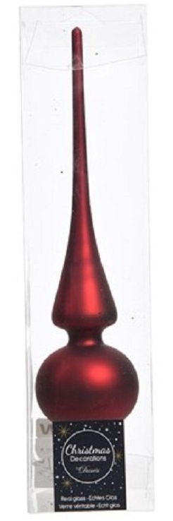* Setzen Sie Ihren Weihnachtsbaum mit dieser schönen Christbaumspitze in Szene. Die Weihnachtsbaumspitze verwandelt Ihren Christbaum in ein echtes Highlight und lässt sich gut mit anderem Christbaumschmuck kombinieren. * Material: Glas * Maße ca.: ø 6 x 26 cm * Farbe: ochsenblut matt * Verpackungseinheit: 1 Stück