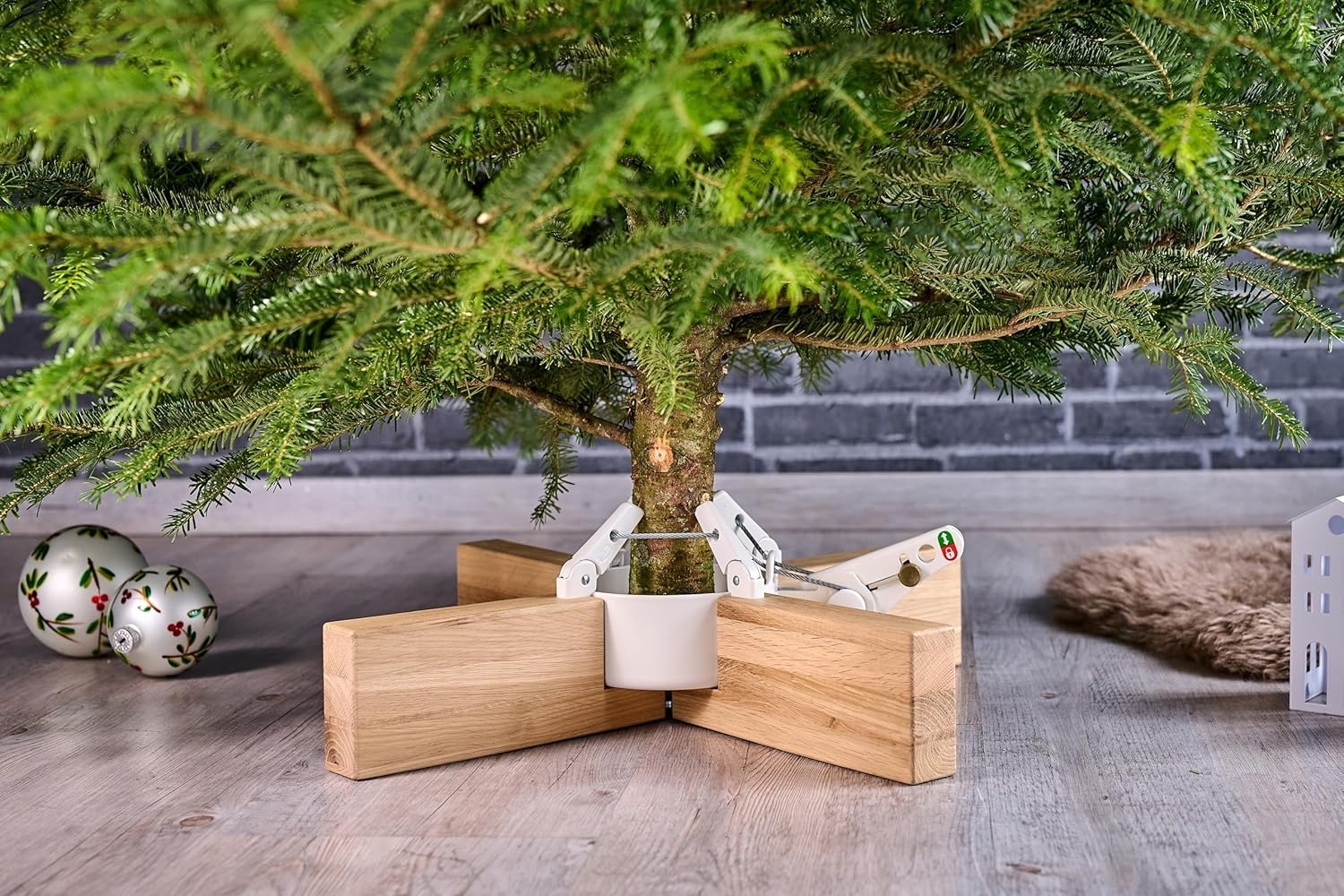 Krinner Kopenhagen Christbaumständer weiß. Die KRINNER RundumEinseilTechnik garantiert bequemste Handhabung und stressfreie Weihnachten mit festem Halt ihres weihnachtlich geschmückten Christbaumes. Geeignet für Bäume bis zu 2,5m. Verleihen Sie Ihrem Weihnachtsbaum den stabilen Halt für die Weihnachtsfeiertage. Der Christbaumständer hat einen Durchmesser von 50cm und kombiniert bewährte Technik mit moderner Linienführung im Nordic Design. Er besteht aus massiver Eiche in Kombination mit weiß lackiertem Stahl. Der Krinner Kopenhagen Christbaumständer wurde mit dem Reddot Award Winner 2019 ausgezeichnet. Der Stamm hat einen Durchmesser von 3 cm und der Wasserbehälter ist begrenzt auf 12 cm, um die Langlebigkeit Ihres Christbaumes zu gewährleisten. Mit dem Weihnachtsbaumständer von Krinner sind Sie perfekt ausgestattet für das kommende Weihnachtsfest. Sicher, einfach und ohne Stress. **Highlights** - KRINNER RundumEinseilTechnik für bequeme Handhabung und festen Halt des Christbaumes - Geeignet für Bäume bis zu 2,5m - Durchmesser von 50cm für stabilen Stand - Nordic Design mit massiver Eiche und weiß lackiertem Stahl - Reddot Award Winner 2019 **Produkteigenschaften** - Durchmesser Stamm: 3 cm - Wasserbehälter begrenzt auf 12 cm - Langlebigkeit des Christbaumes gewährleistet - Einfache und sichere Handhabung