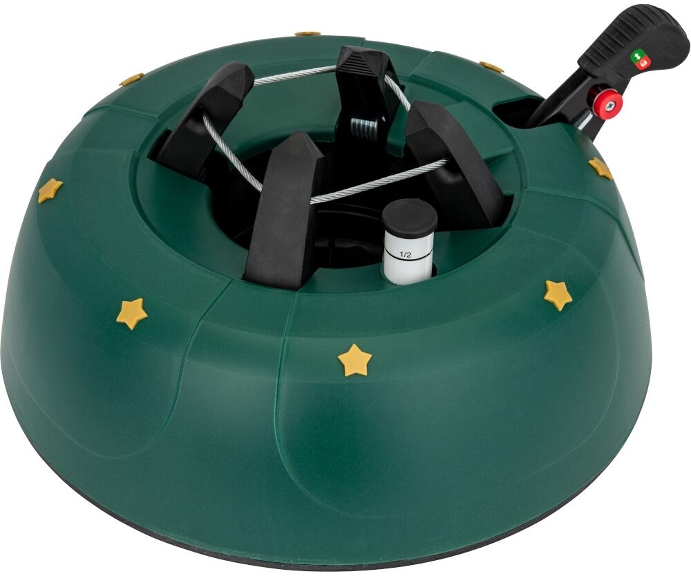 mit Fußhebelfunktion und Einseiltechnik ist für eine Baumhöhe bis max. 3 m und einen Stammdurchmesser von 3 - 13 cm geeignet der Wassertank kann bis max. 3 Liter gefüllt werden der Ständer hat ein Gewicht von 5 kg und die Standfläche beträgt 37 cm einfache Handhabung: den Baum in den Ständer stellen, den Hebel runtertreten, Sicherung umlegen, Wasser einfüllen – fertig