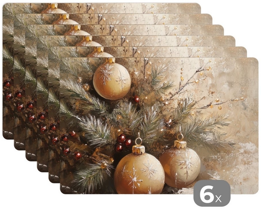 | Name | MuchoWow Platzset Weihnachten - Kugeln - Beige - Gold, (6-St), Platzsets, Tischset, Abwaschbar, Tischsets, Platzdeckchen |