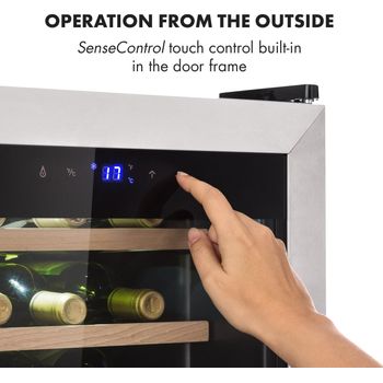 - Die Temperatur kann bequem per Touch-Bedienung eingestellt werden, während die integrierte Beleuchtung die Flaschen stilvoll in Szene setzt.