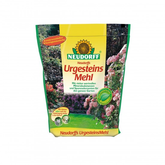 - Neudorff Urgesteinsmehl ist ein Bodenhilfsstoff, der aus Diabasgesteinsmehl hergestellt wird und zur Wiederanreicherung des Bodens mit Mineralsubstanzen und Spurenelementen dient.