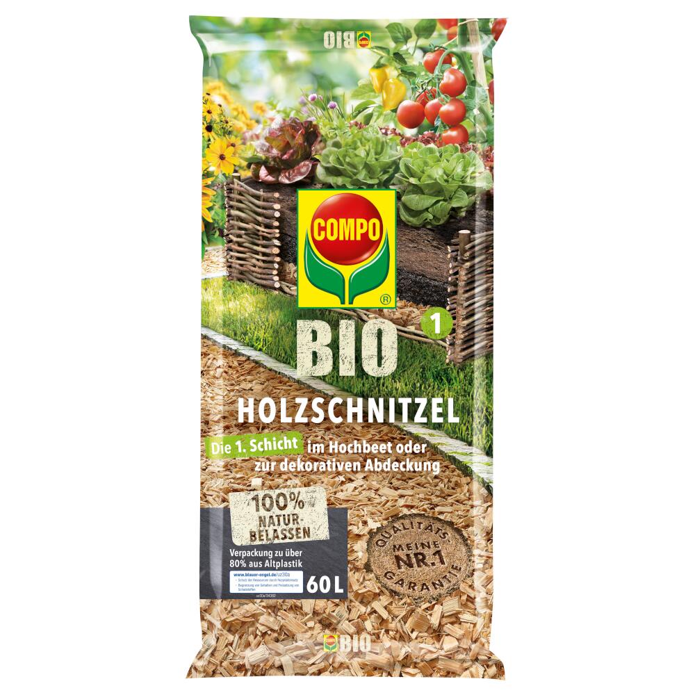 - Compo® BIO Holzschnitzel bestehen aus entrindetem Nadelholz und sind ideal zur Verschönerung von Gartenanlagen, Rabatten und Wegen geeignet.