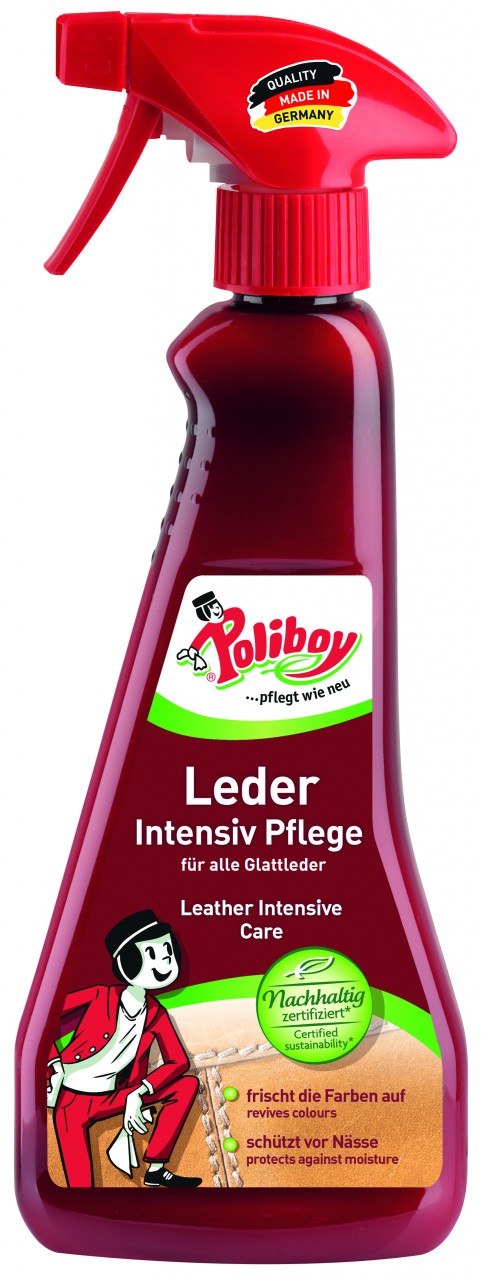 - Die Leder Intensiv Pflege von Poliboy ist ideal zur schonenden Reinigung und Pflege aller glatten und genarbten Leder in allen Farben.
