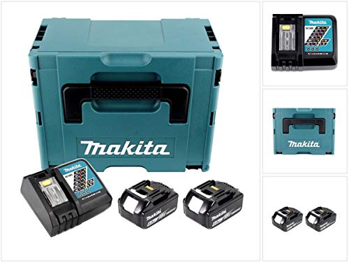 Makita BL1860B Akku-Set Li-Ion 18V LXT 6 Ah mit Ladestandsanzeige 2 Akku mit Ladegerät mit Makpac