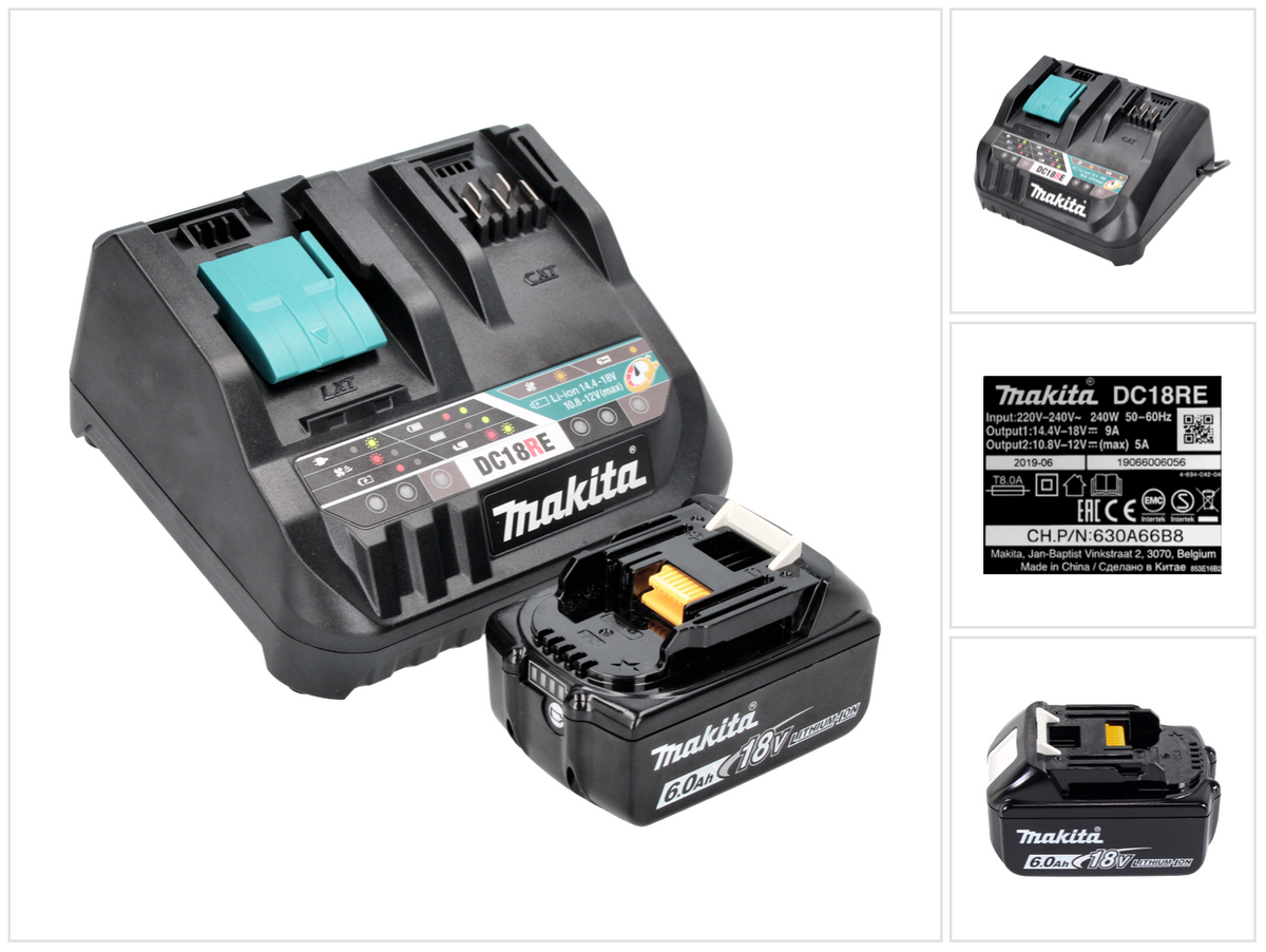 Makita BL1860B Akku-Set Li-Ion 18V LXT 6 Ah mit Ladestandsanzeige 1 Akku mit Multi Schnellladegerät