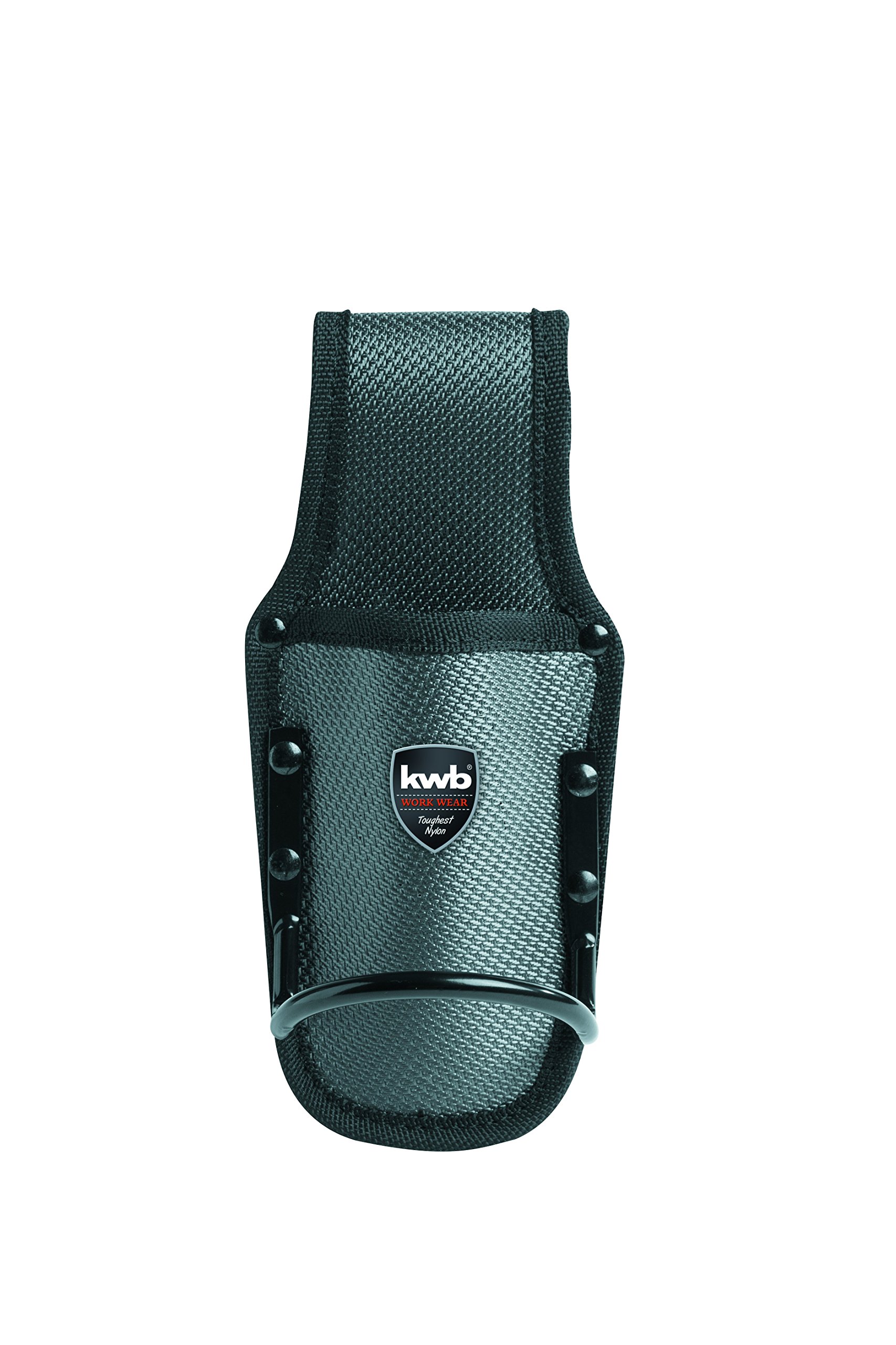 kwb Messertasche mit Hammerhalter in Silber-SchwarzWerkzeugtasche aus Nylon für den Gürtel mit Bügel für Hämmer und Metallclip für den Gürtel