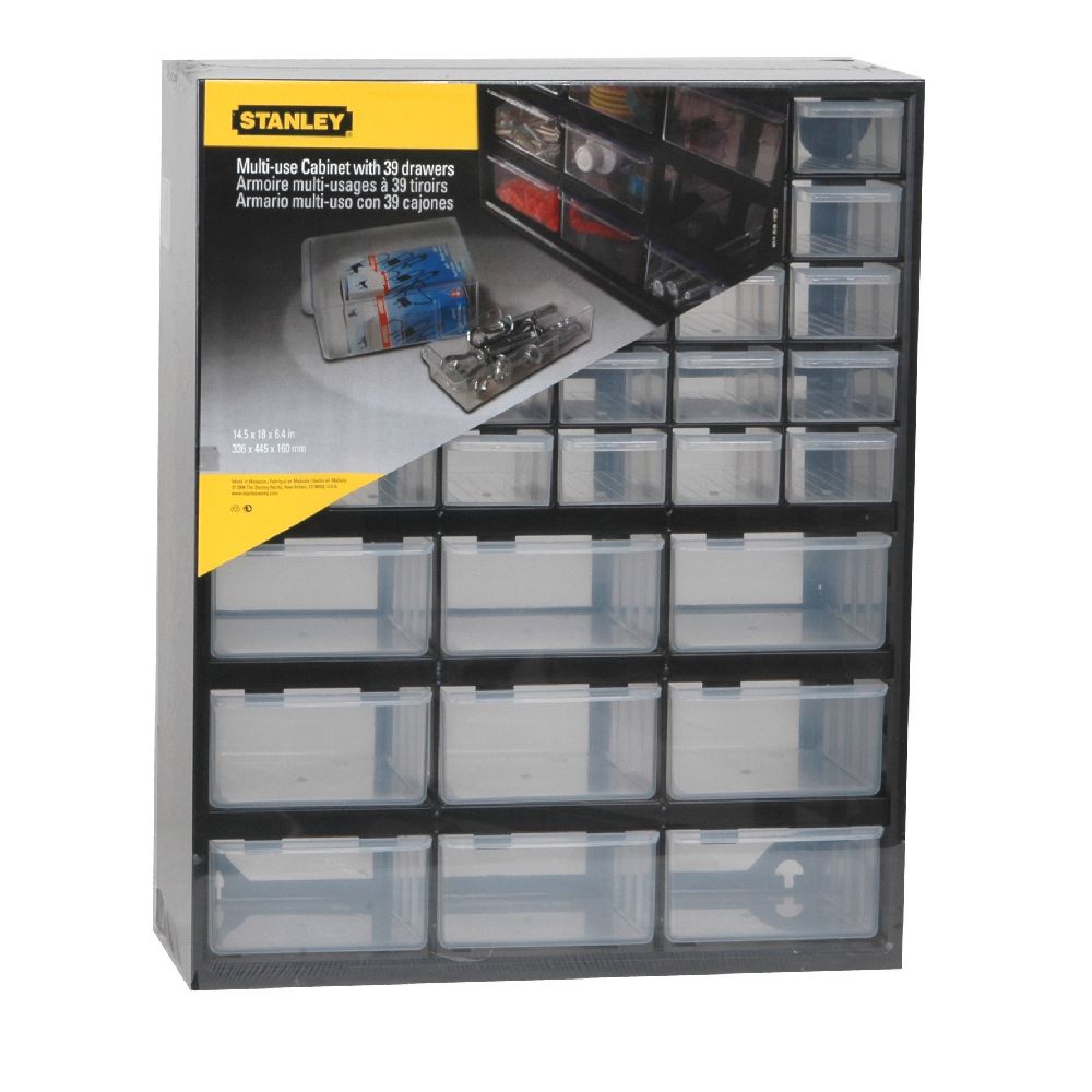 - Der STANLEY® Mehrzweck-Aufbewahrungsbehälter verfügt über 30 kleine und 9 große Schubladen, die ideal zur Aufbewahrung von Kleinteilen wie Schrauben und Befestigungen sind.