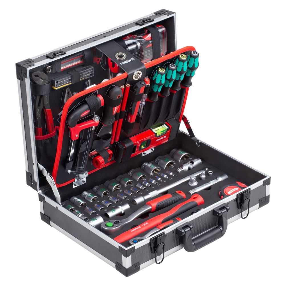Der Meister Werkzeugkoffer 131-teilig ist ein umfangreiches Set mit diversen Typen von Werkzeugen. Die enthaltenen Knipex Zangen zeichnen sich durch eine gute Qualität aus und eignen sich besonders für den Gelegenheitsnutzer. Der stabile Alu-Koffer schützt das Werkzeug vor Beschädigungen und bietet genügend Platz für alle Teile.