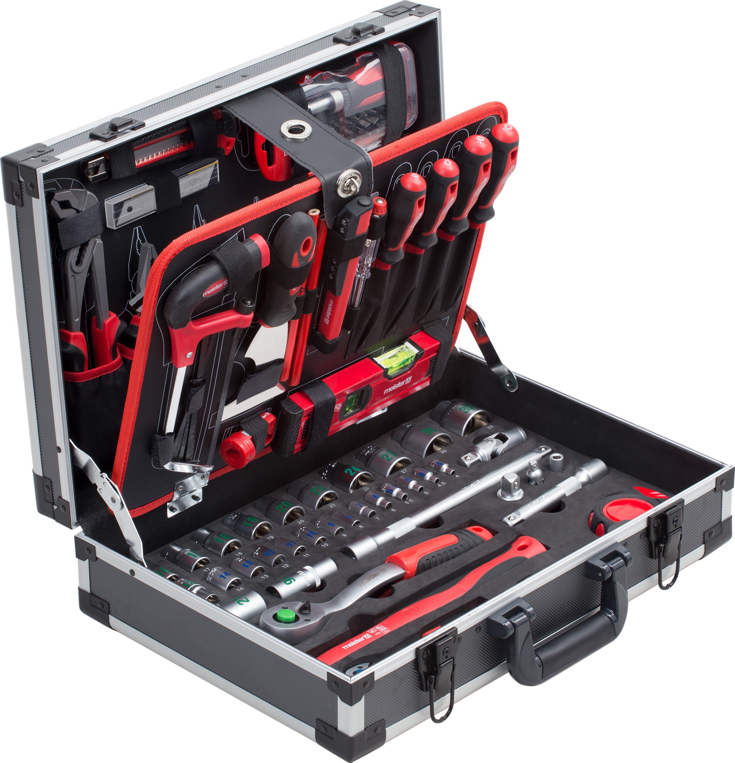 Meister Werkzeugkoffer 131-teilig - Stabiler Alu-Koffer - Werkzeug-Set - Für HaushaltGarage & Werkstatt - Profi Werkzeugkoffer befüllt - Werkzeugkiste - Werkzeugbox komplett mit Werkzeug - 8971470