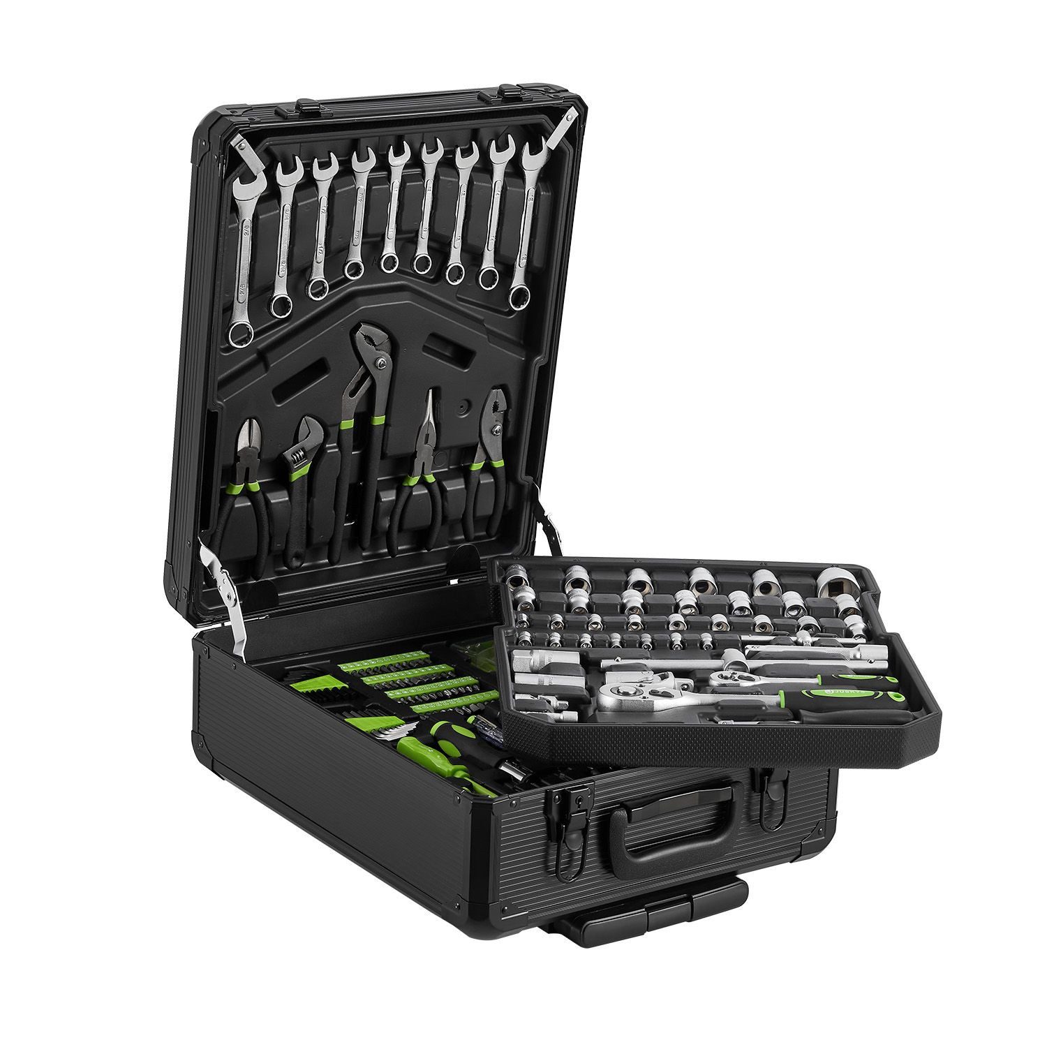 Juskys Werkzeugkoffer 1200-teiligmit Trolley-Funktion, Schwarz
