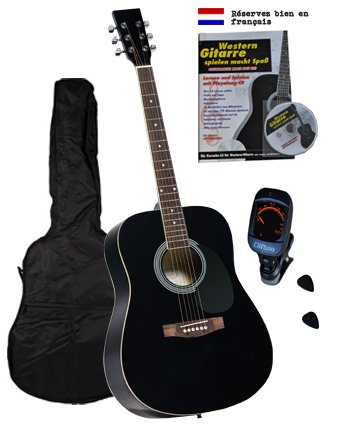 in WesterngitarrenCLIFTON Western Gitarren SetRosewood Griffbrett und Brücke, inkl. Lernbuch, Karaoke-CD, gepolsterter Tasche, digitales Stimmgerät und Plectren