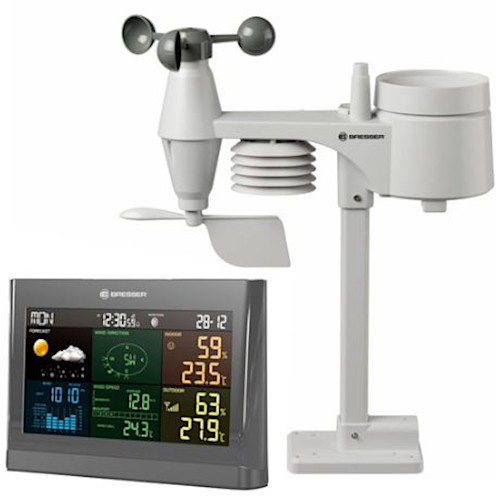 - Das Bresser 5-in-1 Comfort Wetter Center verfügt über einen multifunktionalen Außensensor, der Windgeschwindigkeit, Windrichtung, Luftfeuchtigkeit, Temperatur und Niederschlagsmenge misst.