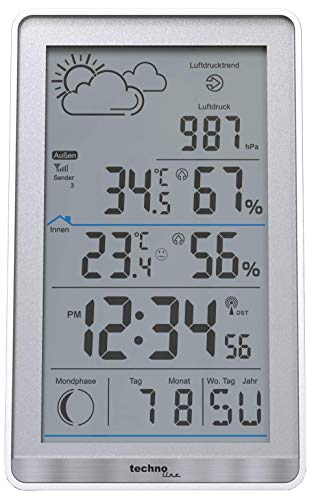 Funkwetterstation WS9218 inklusive Außensender TX106-THInnentemperatur, Außentemperatur, Luftfeuchte, Luftdruck, Vorhersage