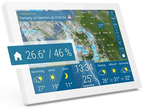 wetteronline home 3WetterDisplay mit WetterRadar: neue Generation der WLAN-Wetterstation, Innenraumsensor zur Kontrolle des Raumklimas, Pollenflugvorhersage für Allergiker, UV-Index, UnwetterWarnung