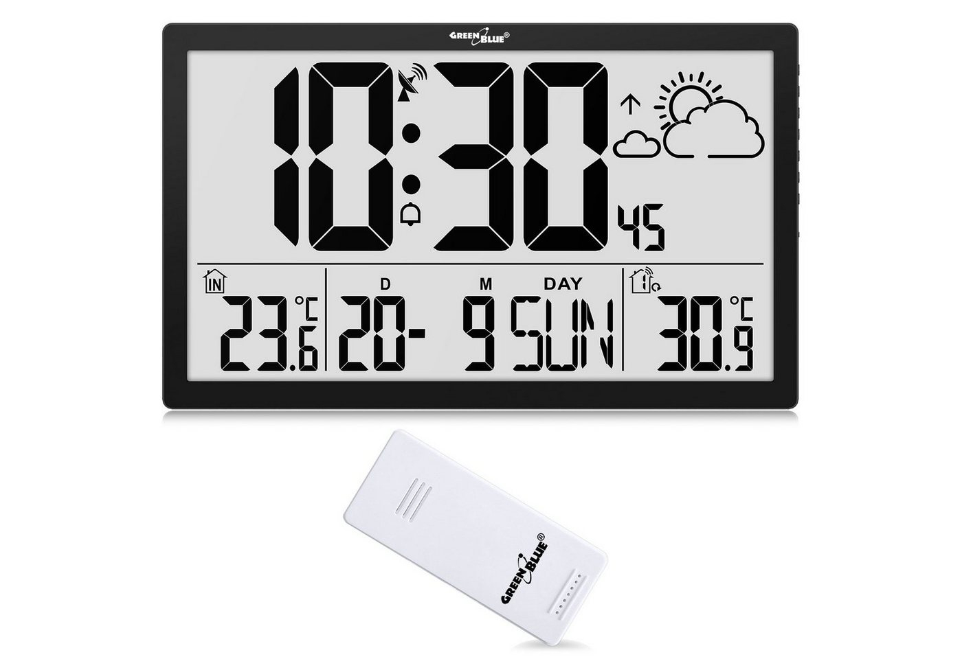 GreenBlue Wanduhr GB218 (Wetterstation, Digitale Wanduhr mit Außensensor)