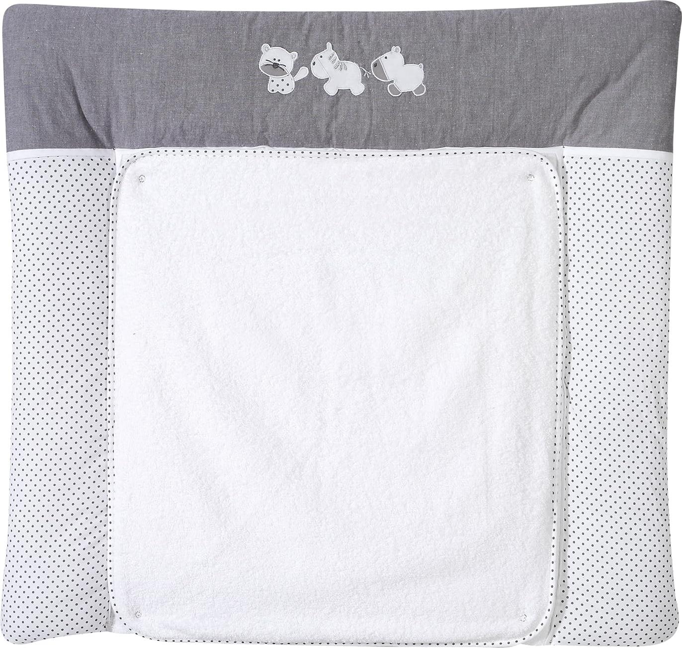 Die Schardt 'Amigos' Wickelauflage in Weiß/Grau bietet mit ihren Maßen von 80x75 cm eine komfortable und praktische Lösung für das Wickeln Ihres Kindes. Der abnehmbare Frotteebezug aus 100% Baumwolle ist bei 30°C im Schonwaschgang waschbar. Die extra weiche Polsterung aus 100% Polyestervlies sorgt für zusätzlichen Komfort. Mit liebevoll gestalteten Stoffdessins wird jedes Kinderzimmer verzaubert. **Highlights** - Abnehmbarer Frotteebezug für einfache Reinigung - Frotteebezug waschbar bei 30°C im Schonwaschgang - Obermaterial aus 100% Baumwolle für hohe Qualität - Weiche Polsterung aus 100% Polyestervlies für Komfort - Aufwendig verarbeitete, farblich abgestimmte Baumwollstoffe **Produkteigenschaften** - Maße (BxT): 80x75 cm - Applikation und Stickerei im Dessin Amigos - Pflegeleicht und unkompliziert im Alltag **Lieferumfang** - Wickelauflage mit abnehmbarem Frotteebezug - Ohne zusätzliche Zubehörteile