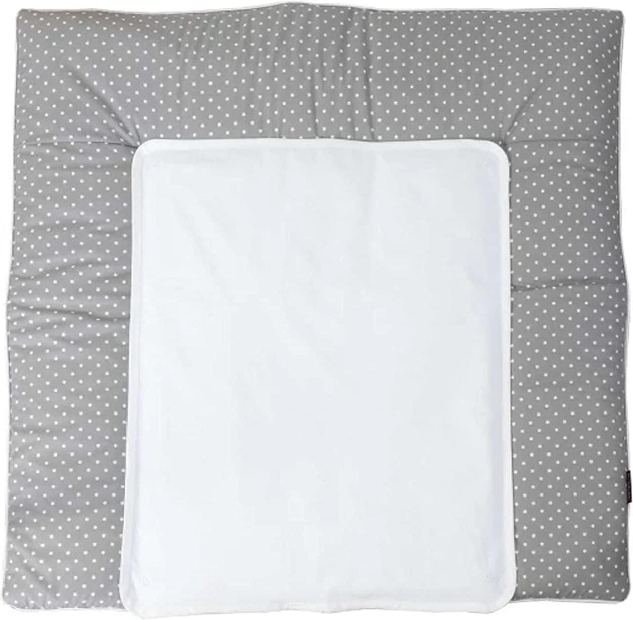 | Name | Puckdaddy Wickelauflage Inga mit Metall Druckknöpfe 77x76 cm mit Pünktchen Muster in Grau |