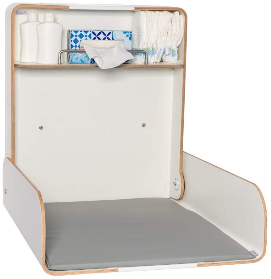 Der klappbare **Wickeltisch Toledo** ist aus hochwertigem Formholz hergestellt und wahlweise mit einer Resopalbeschichtung in der Farbe weiß, anthrazit, buche oder eiche erhältlich. Durch diese widerstandsfähige Beschichtung ist dieses Wickelregal hervorragend in hoch-frequentierten öffentlichen Bereichen gut gegen Stöße und Verunreinigungen geschützt. Die **Montage** und Bedienung der Wickelstation ist einfach und nahezu selbsterklärend. **Sicherheit** steht dabei im Vordergrund: die Wickelkommode ist mit einer wartungsfreien Klappbremse ausgestattet, die ein ruckartiges Herabfallen der Wickelplatte verhindert. Das belegt auch das TÜV-Zertifikat. - reinigungsfreundlich und hygienisch einwandfrei - ausschließlich Holz aus nachhaltiger, deutscher Forstwirtschaft - Montage mit nur einer Person möglich - kein Verletzungsrisiko durch ruckartiges Herabfallen der Wickelplatte - inkl. einer Wickelauflage aus PU-Leder (PVC-frei, fett- und ölbeständig) in der Farbe grau - Montage an Gipskartonwänden möglich, wenn Einlagen vorhanden sind