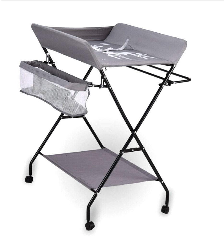 in WickeltischeBerkalash Klappbarer Wickeltisch Mobiler Wickelregal Grau, Wickelkombi mit Wickelauflage, Sicherheitsgurt und Ablagefächern, Kleinkinder bis 12 Monate (mit Rollen)