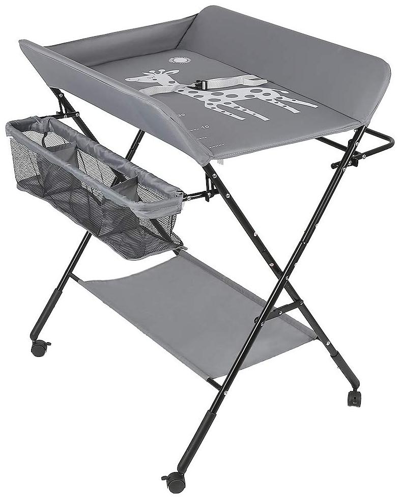 | Name | Flyelf Wickeltisch Baby Faltbar und Tragbar, Höhenverstellbar, Giraffenmuster Wickelkombination Bade (Grau) |