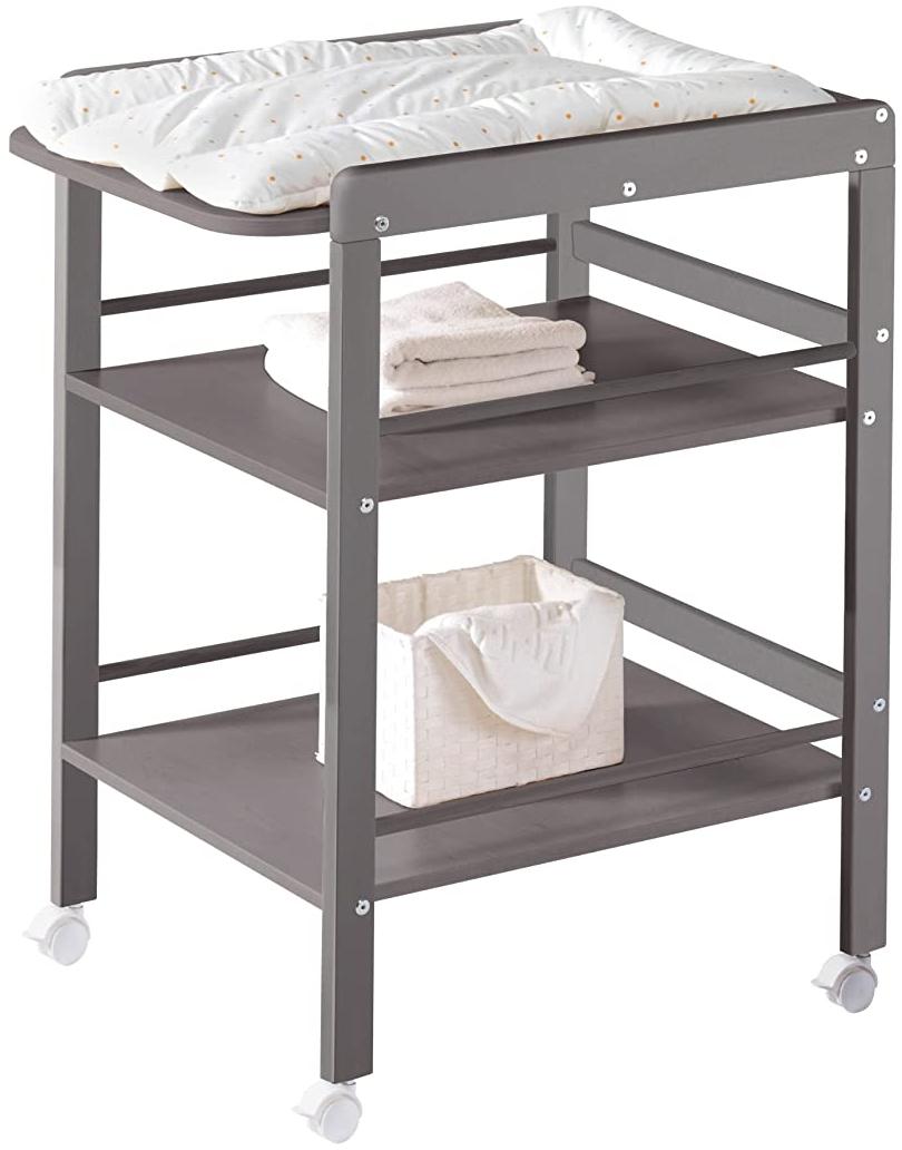 Das Wickeltisch von Schardt bietet eine funktionale und optisch ansprechende Lösung, um Ihrem Baby einen optimal ausgestatteten Wickelplatz zu schenken. Sie ist aus massiver Kiefer gefertigt in der Farbe Dunkelgrau. Die feststellbaren Rollen sorgen für stabilen Halt und machen das Wickeltisch mobil und überall einsetzbar. Mit einer Wickelfläche von 71x53 cm eignet sie sich für alle gängigen Wickelauflagen. Dank der komfortablen Wickelhöhe von 87 cm müssen Sie sich nicht tief bücken, wenn Sie Ihr Baby wickeln möchten. Die 2 Ablageböden bieten viel Platz und Verstaumöglichkeiten für alle Wickelaccessoires.