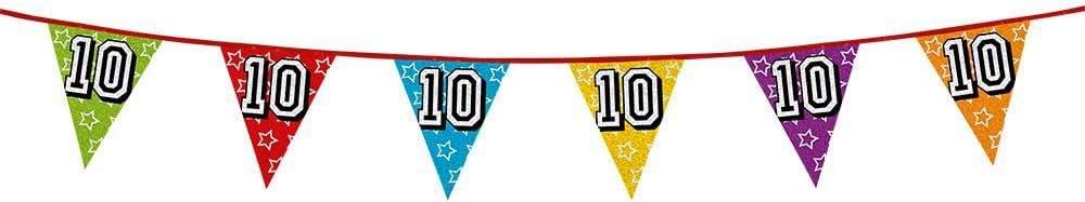 | Name | Boland 30010 - Holografische Wimpelkette Zahl 10, 1 Stück, Länge 800 cm, Fahnenkette, Sterne, Hängedekoration, Mehrfarbig, Girlande, Mottoparty, Geburtstag, Jubiläum |