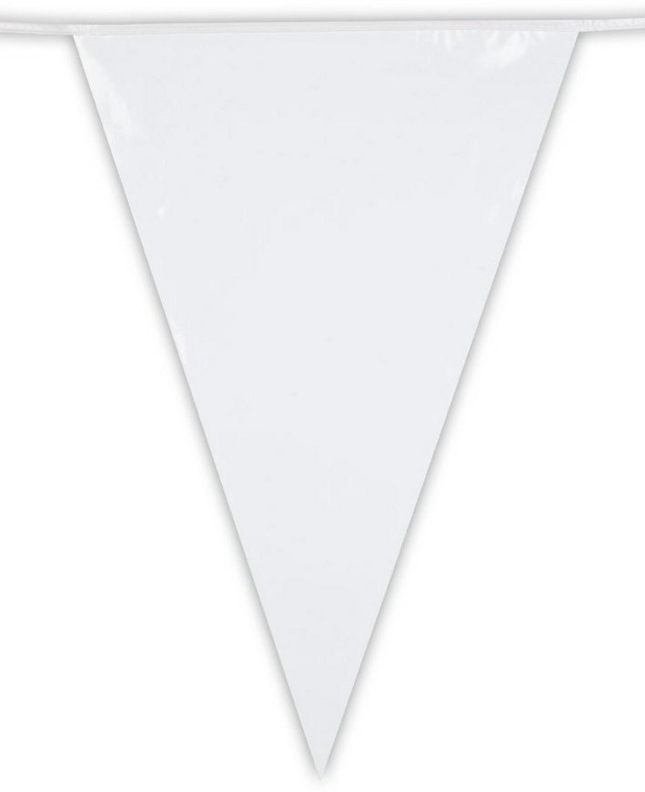 Sie suchen eine pfiffige Dekoration für die nächste Geburtstags-, Motto- oder Gartenparty? Dann ist diese Riesenwimpelkette, der Marke Boland, genau das Richtige für Sie Die weiße Girlande besteht aus einer Kunststofffolie Sie ist ca. 10 m lang und hat eine Höhe von ca. 45 cm