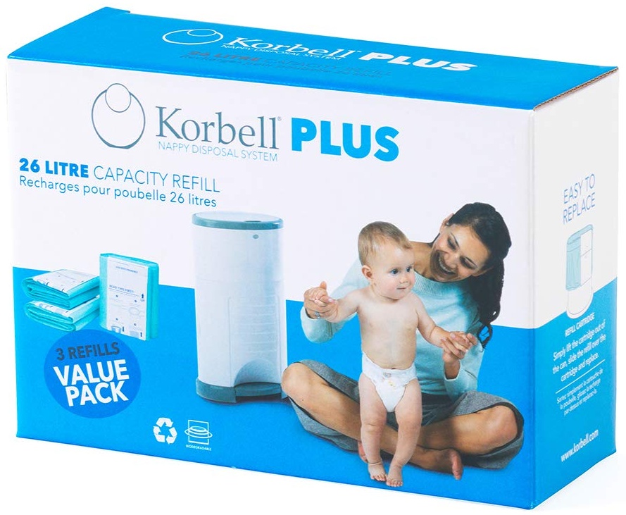 | Name | Korbell - Nachfüllpackungen für Windelbehälter - MAXI - 26 L - x3 - Biologisch abbaubar - Geruchskontrolle - Kapazität 330 Windeln |