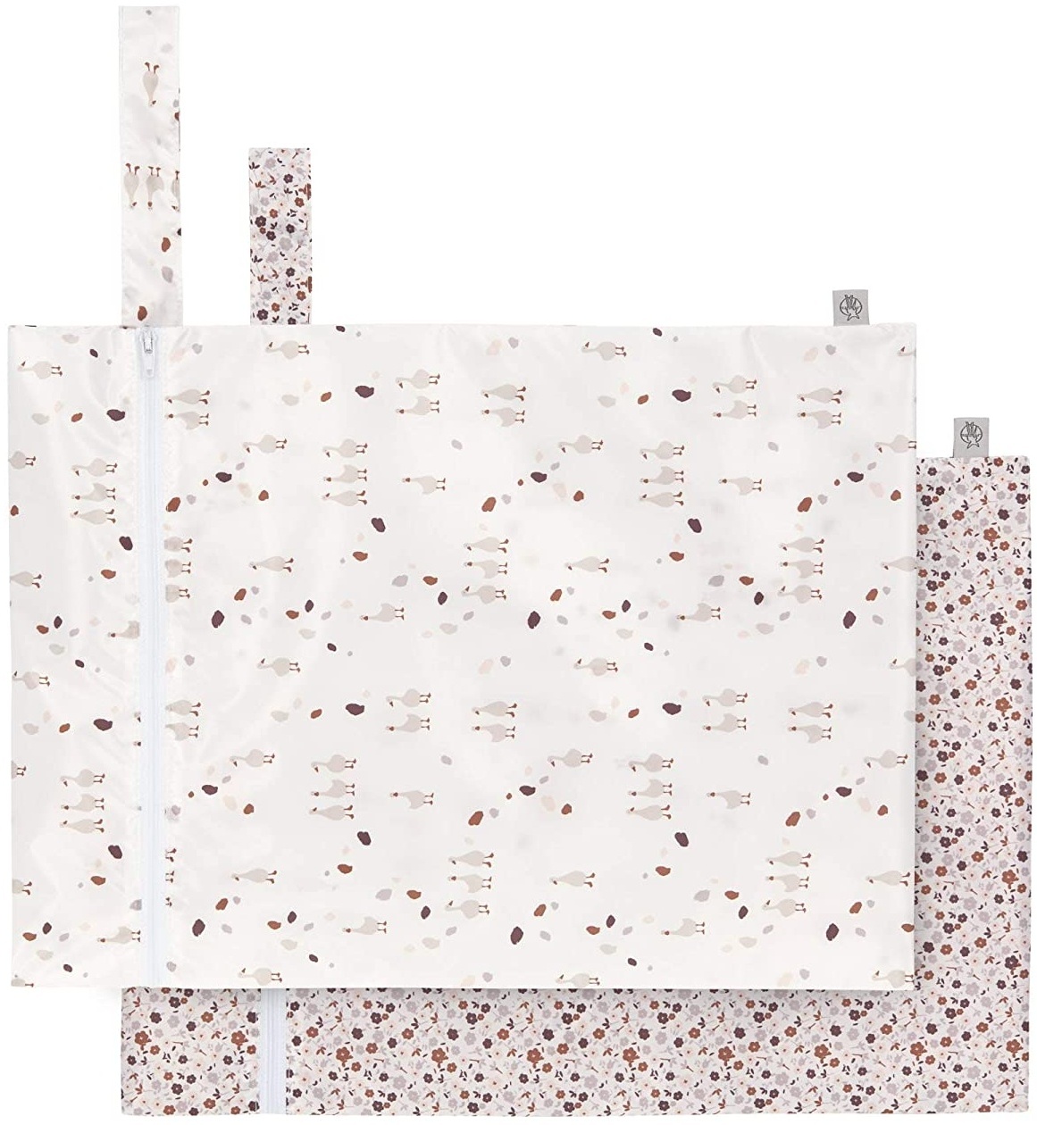 LÄSSIG Wiederverwendbare Nasstasche 2 Stück/Wet Bag Tiny Farmer Flowers/Goose