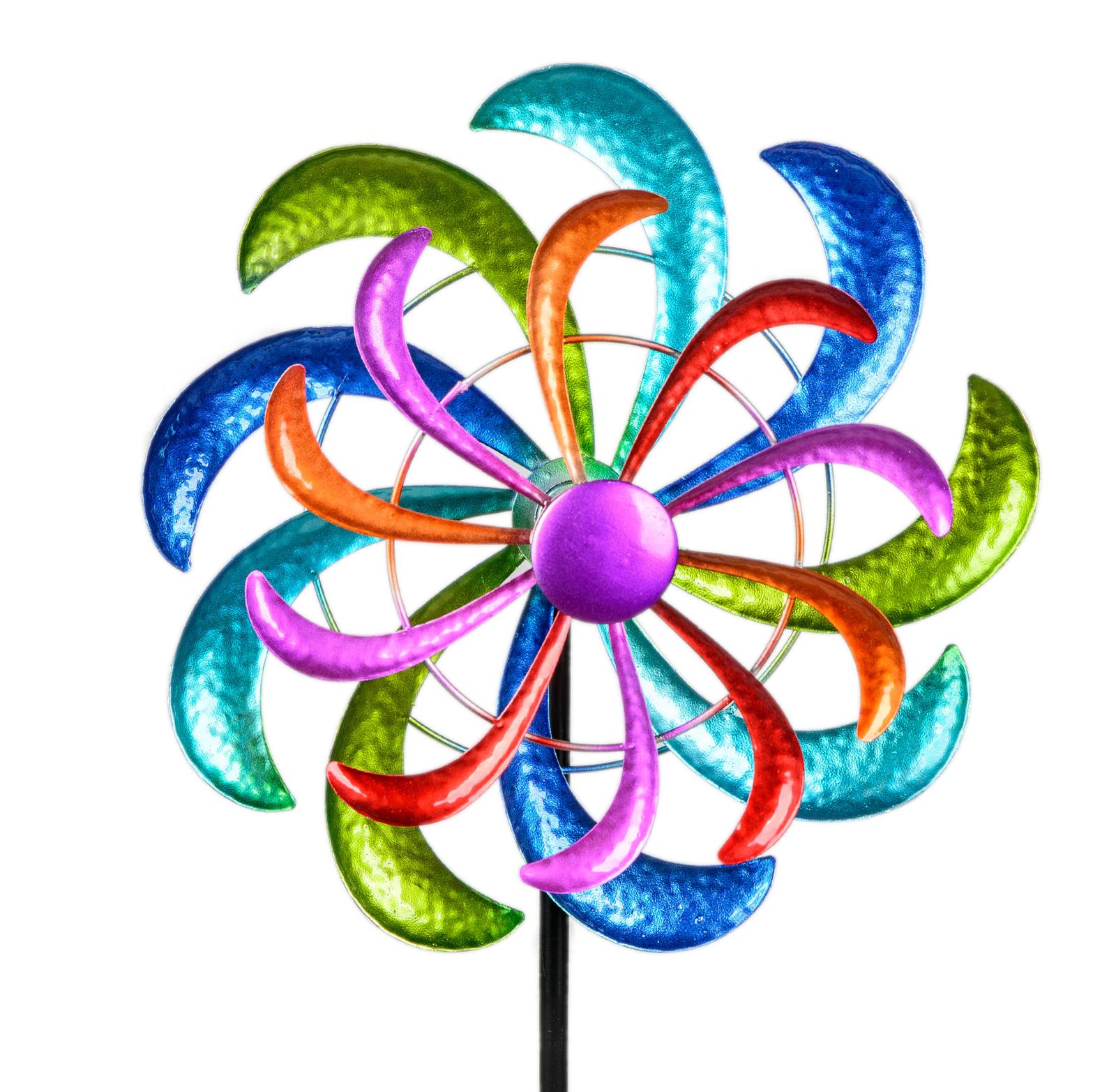 Buntes Windrad Blume für den Garten aus Metall Windspiel Windmühle 124 cm
