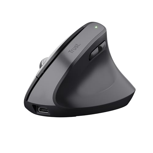 Black Deal in Wireless-MäuseTrust Bayo+ Wiederaufladbare Vertikale Maus Bluetooth + RF 2.4GHzVorbeugung Gegen Mausarm/Tennisarm (RSI Syndrom), 70% Recyclingkunststoff, Kabellose Ergonomische Maus PC, Laptop, Mac - Schwarz